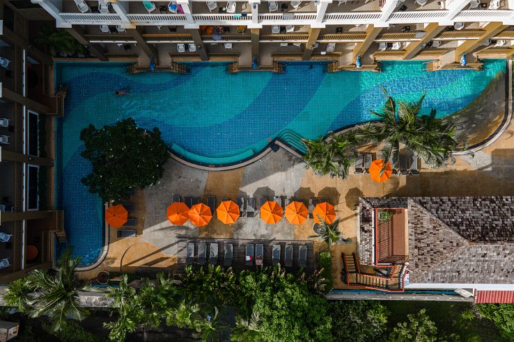 The hotel was opened in 2002 and partially renovated in 2012. It is located on Kata beach on the southwest coast of the island, 500 m. across the road from the sea. The property includes three buildings and offers 330 guest rooms.
