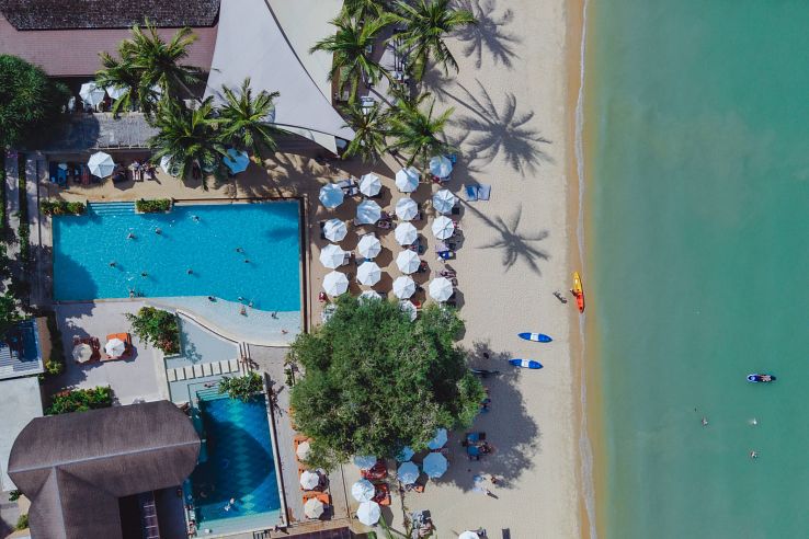 This beachfront hotel was opened in November 2008 and partially renovated in 2014. It is located on Maphrao island, 40 km from Phuket International Airport, 8 km from Phuket Town and just a 5 minute boat ride from Phuket pier. The compound is comprised of 44 posh pool villas and 120 Deluxe Hotel Suites and encompasses 232 guest rooms.